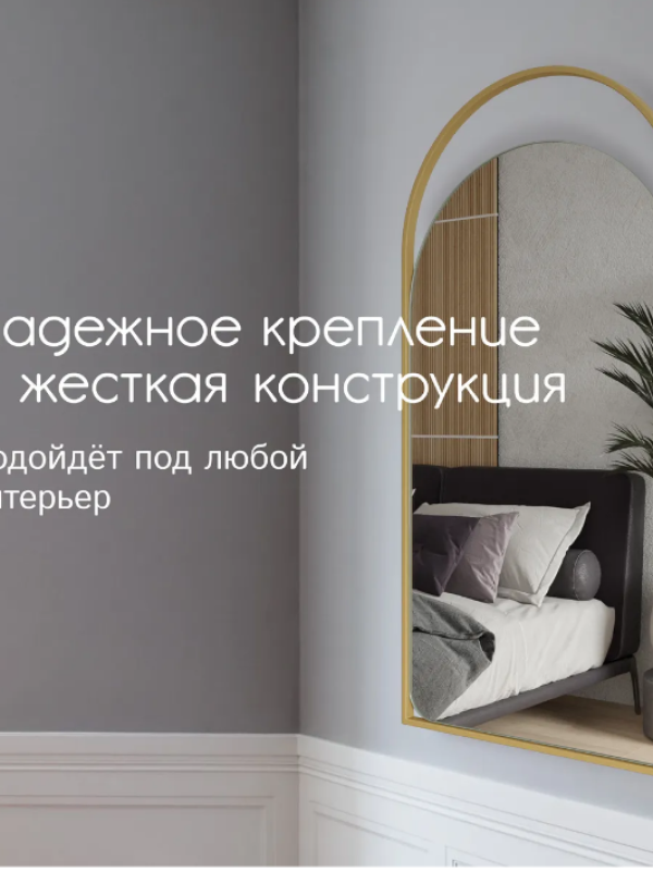 Зеркало «Artful». Артикул GMZ-04-1/2/3 Зеркала-арки часто используют дизайнеры интерьеров для того чтобы «оживить» пространство, добавить в него свет, создать иллюзию его расширения. Представленное арочное зеркало настенного типа является ярким тому подтверждением. Размеры этой модели делают зеркало функциональным, а изящная металлическая рама вместе с ним делает его универсальным. Зеркало подходит для ванной, спальни, коридора, гостиной и при этом, благодаря классической форме, способно поддержать любой стиль интерьера. Зеркальное полотно отличается высоким качеством. Оно произведено бельгийской компанией AGC, продукция которой считается эталонной.Характеристики:– габаритные размеры – 1020х520х20 мм; – размер зеркального полотна 900х500 мм, толщина – 4 мм; – размеры профиля рамы 10х20 мм; – стойкая порошковая окраска; – цвета на выбор – золотой, чёрный, белый; – вес – 7 кг; – саморезы для крепления к стене в комплекте; – гарантия – 1 год.