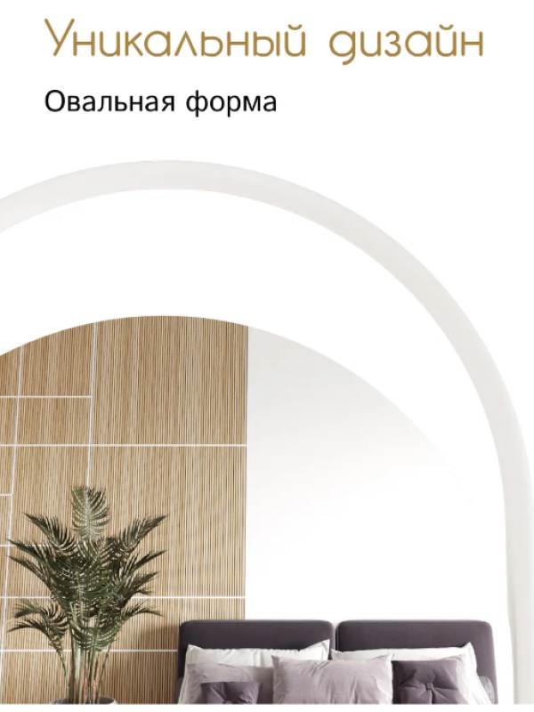 Зеркало «Queen». Артикул GMZ-01-1/2/3 Дизайнерское напольное зеркало в полный рост в металлической овальной раме ручной работы выполнено в минималистичном стиле. Простая изысканность форм и современный дизайн делает его уместным практически в любом интерьере. Оно может быть установлено в спальне, прихожей, гостиной, где за счёт своих внушительных размеров способно расширить пространство и создать иллюзию источника освещения. Зеркальное полотно изготовлено известным бельгийским производителем AGC и воплощает в себе старинные европейские традиции в совокупности с новейшими технологиями изготовления стекла. Наклон зеркала оптимальный фиксированный, что позволяет отражать любой рост.Характеристики:– профиль рамы – труба, диаметром 20 мм; – габариты – 1650х540х400 мм; – размер зеркального полотна – 1350х500 мм, толщина – 4 мм; – вес – 11 кг; – устойчивая двухслойная порошковая окраска; – возможные цвета – золотой, чёрный, белый.