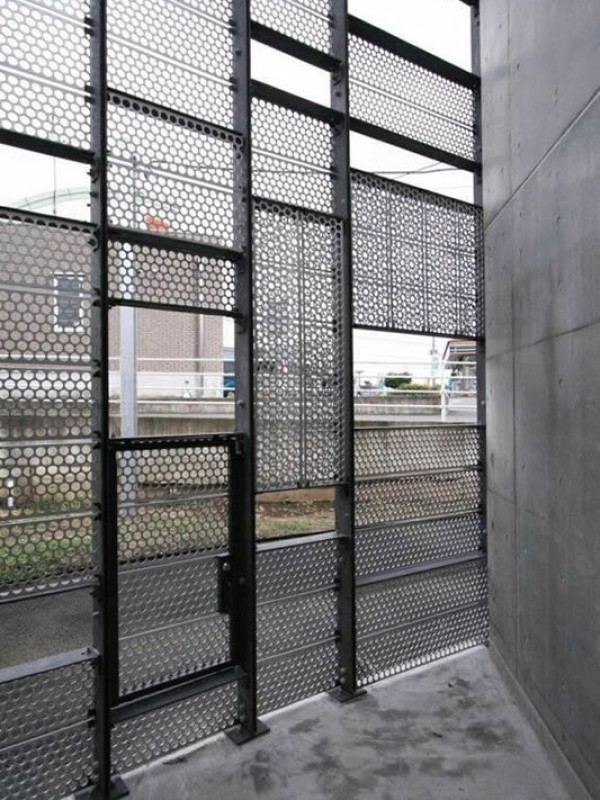 Стиль лофт активно используется в оформлении не только внутреннего пространства бывших заводов и фабрик, но и во внешней отделке зданий. Ограждение Лофт 8 отлично дополнит первый этаж здания, например, перед центральной входной группой. Визуально конструкция выглядит как полотно, составленное из нескольких полос разной ширины. Вертикальные стойки крепятся к полу и к потолку здания. Между ними в произвольном порядке зафиксированы сетки, отличающиеся друг от друга рисунком и размером. Ажурные сетки чередуются с классическими с круглыми отверстиями. В теплое время года ограждение стильно украсят ампельные виды растений – цветы с длинными вьющимися побегами, которые можно подвесить в горшках или кашпо на ограждение.